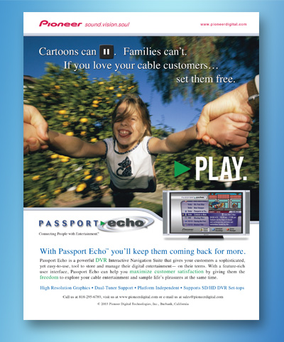 Ad supporting latest iteration of Pioneer's DVR IPG (Interactive Program Guide).
