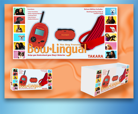 Just one of a few concepts for this tech entertainment product which claimed (with a wink mind you) that it could translate how your dog is feeling into English, Japanese, etc. A novelty item that was as cute as the packaging concepts.