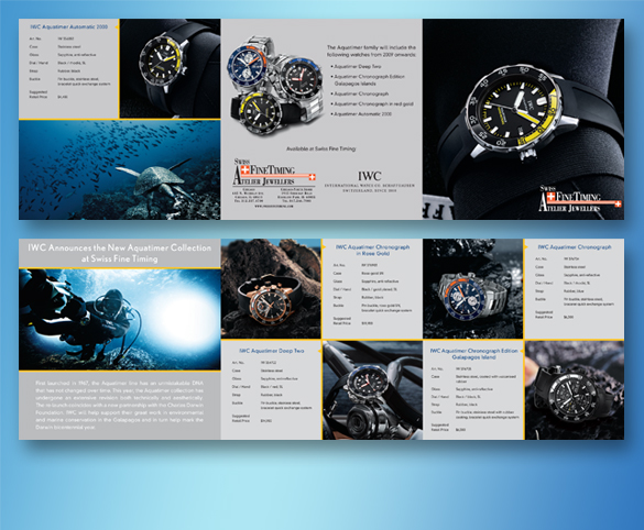 Co-branded mailer piece supporting the launch of the IWC Aquatimer Collection to U.S. Markets. Art direction, design and copywriting by JAMdesigns.