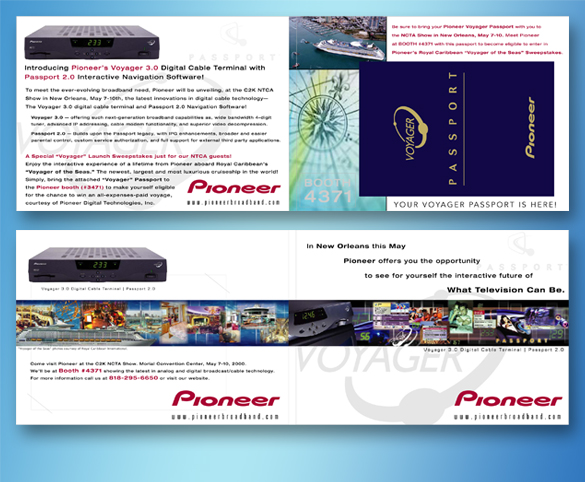 Client: Pioneer Electronics | Tradeshow Direct Mail Promotions | NCTA Tradeshow (2000) - Voyager Cruise Giveaway