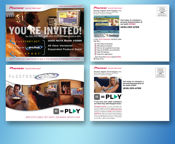 Client: Pioneer Electronics | Tradeshow Direct Mail Promotions | Tradeshows from 1999-2006 (CES, NCTA, NAB, SCTE)