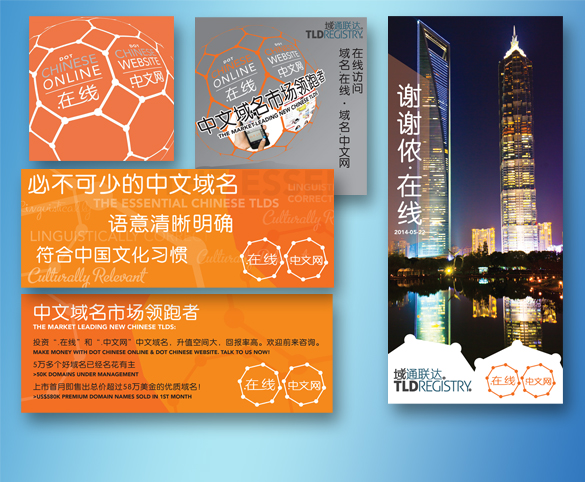 Booth panel artwork and pop-up banner displays for TLD's efforts at event marketing throughout China and South East Asia.
