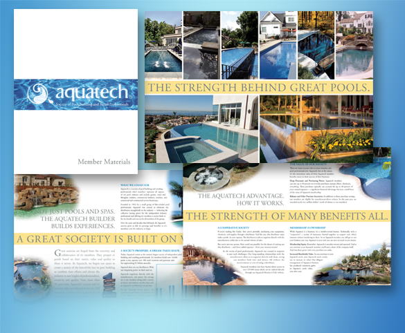 Aquatech is a consortium of pool builders that was looking to expand their market reach and influence by developing both consumer and builder member programs. Once again, having great custom imagery helps make the case.