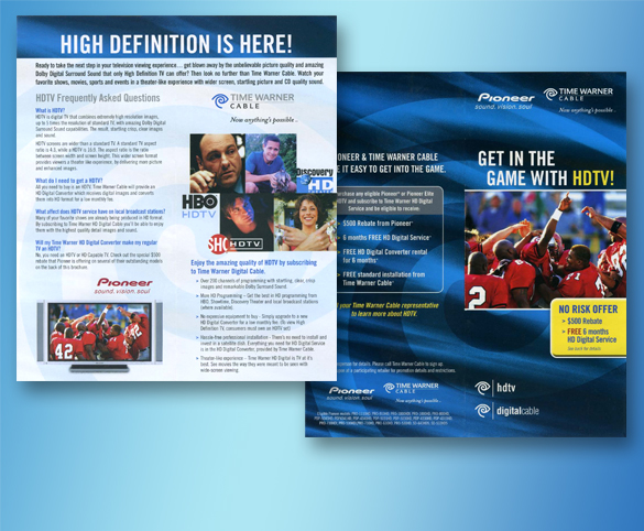 Client: Pioneer Electronics | Time Warner Co-Op HD Offer Brochure | Published 2000