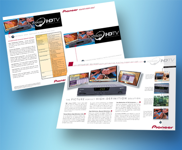 As part of the Pioneer Marketing kit, this brochure showcased the Pioneer HD Digital Cable set-top. Due to the life-cycle of set-tops, we opted to keep the technology marketing modular so updates could be swapped in when necessary.